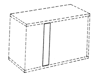 THE MARK COMPRISES A VERTICAL BAR PLACED APPROXIMATELY ONE-THIRD OF THE WAY DOWN THE FRONT OF THE LOUDSPEAKER CREATING TWO SECTIONS.