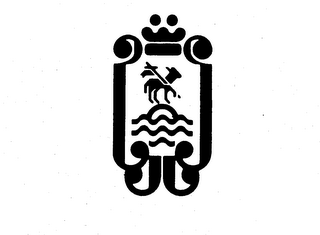 The mark is a stylized representation of a coat of arms including a lamb bearing a cross with a banner on it above a sun or moon rising out of a body of water.
