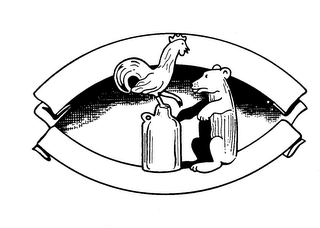 The lining and stippling shown in the mark behind the figures and below the upper banner are features of the mark and do not indicate color.