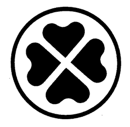 THE MARK CONSISTS OF FOUR HEART-LIKE SHAPES ARRANGED IN A CLOVERLEAF-STYLE PATTERN IN A CIRCLE, THE HEART-LIKE SHAPES BEING SPACED APART FROM ONE ANOTHER AND HAVING THEIR POINTED ENDS FACING TOWARDS THE CENTER OF THE CIRCLE.