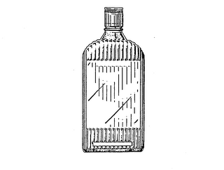 THE MARK CONSISTS OF A UNIQUE GLASS BOTTLE SURROUNDED BY VERTICAL RIBS WHICH PROTRUDE FROM THE SURFACE. THE RIBS COMPLETELY SURROUND THE BOTTLE, EXCEPT FOR THE FRONT CENTRAL AREA, WHICH IS INDENTED AND OF SMOOTH TEXTURE, AND TO WHICH THE LABEL IS ATTACHED, A SMALL AREA ON THE UPPER REAR OF THE BOTTLE, AND A VERY SMALL AREA ON THE BOTTOM FRONT OF THE BOTTLE.