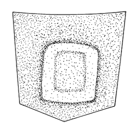 The mark consists of an irregular rectangle on a pocket which simulates a wear pattern that would naturally be created on the fabric from a rectangular object carried inside the pocket for a prolonged period of time. The outline of the irregular rectangle is defined by a border which is lighter in color than the fabric on the rest of the pocket. The area within the border of the irregular rectangle is darker in color than the border of the rectangle, but lighter in color than the fabric on the rest of the pocket.