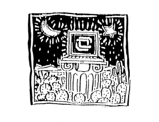 The mark consists of a computer on a pedestel in a nighttime desert landscape.