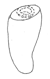 The mark consists of a configuration of a tongue. The circular lid on the top of the configuration is not claimed as part of the mark.