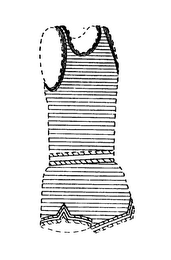 The drawing is lined for the colors blue and green. Although difficult to depict with color lining, the striping from the arm holes inward and the neck hole inward is as follows - green stripe, white stripe, green stripe.