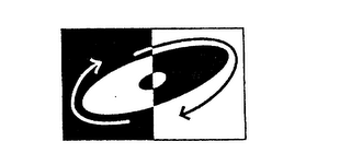 The mark consists of a large elliptical circle containing a smaller circle. The larger elliptical circle is cricled by two arrows pointing in a clockwise fashion. The entire elliptical circle and arrows are enclosed by and divided in half by two abutting squares that form a rectangle.
