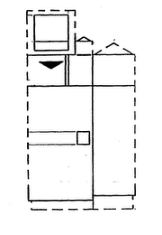 The mark consists of the colors blue and green as applied to the goods. The dotted outline of the goods is intended to show the position of the mark and is not part of the mark. The drawing depicts a product in two sections - the right section consists of a rectangular column with a triangular top and a rectangular base, while the left section consists of a wider rectangular column with a video monitor and a small triangular section at the top. The color green is applied to the left section, and the color blue is applied to the right section.