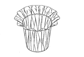 The mark consists of a configuration of a frusto-conical plant pot, the cover having crimped portions with loose, unconnected folds which bulge slightly outward between the crimped portions, with a ruffled skirt at the opening of the pot, and is used as a container for the goods.