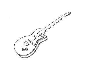 The mark comprises the configuration of a guitar or bass guitar body and headstock. The body of the guitar includes a contrasting binding which wraps around the outer circumference of the guitar body. The neck of the guitar is shown in broken lines and forms no part of the mark. The headstock includes six circles representing tuning peg holes.