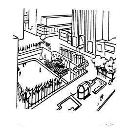 The mark consists of the depiction of the skating rink, sunken plaza and flags of Rockefeller Plaza.
