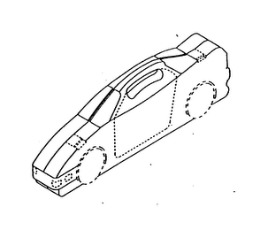 The mark consists of the configuration of a container for the goods in the shape of a car having a carrying handle formed through what would constitute the side windows of the car.