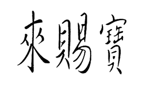 The transliteration of the Chinese character is equivalent to "Lai Syh Boa". Lai means "to come; coming". Syh means "to bestow or confer on an inferior". Boa means "treasure".