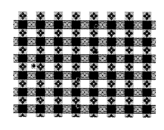 The mark consists of a checkered pattern comprising two crossing lines of contrasting colors, a repeating four-leaf flower design on the non-intersecting portions of the lines, and bullet holes interspersed throughout the pattern.