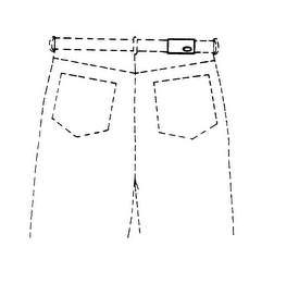the representation of the trousers or the placement of a rectangular leather label on a garment waistband