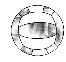 The mark consists of the colors red, white and blue used in the configuration shown on a volley ball.
