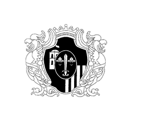 The mark consists of the design of a crest with an abstract design of a crest with eagles on either side.