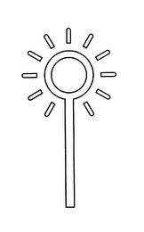 The mark consists of a navy blue circle above a vertical navy blue stripe. The inside of the circle is yellow, and the circle is surrounded by short yellow bars oriented toward the center of the circle.