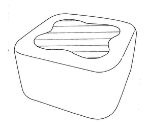 "The mark consists of a white three dimensional rectangular shaped tablet with rounded corners and a blue four petalled floral design center."
