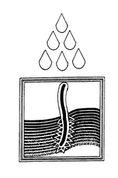 The mark consists of a square shape with the design of a root emerging from the ground with six raindrops above the square in a triangular shape.
