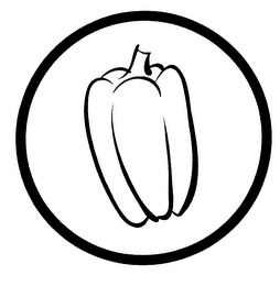 The mark consists of a yellow pepper with dark yellow shading to the left side of the pepper that fades to lighter yellow shading to the right side of the pepper from the perspective of the viewer. The outer ring of the circle is blue and the color fades to lighter shades of blue towards the center of the circle.