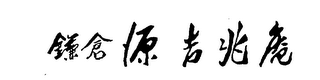 The English transliteration of the mark is "Kamakura Minamoto Kitchoan". "Kamakura" is a name of a place in Japan. "Minamoto Kitchoan" has no meaning in Japanese.