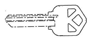 The mark consists of the letter "K" incorporated into the head of the key which is formed by three triangular shapes cut into the head of the key; two of the shapes are on top of and below one another, while the third is perpendicular to the other two.