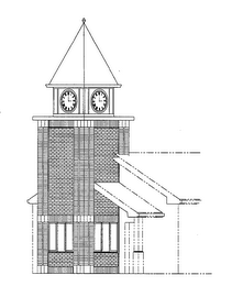 The mark consists of the design of a clock tower that is a part of a larger building or facility. The matter shown in the drawing by dotted lines is not a feature of the mark and no claim is made to it; it serves only to show the position of the mark.