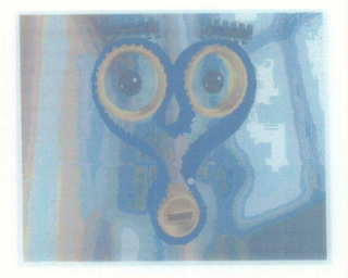 The mark consists of the stylized depiction of a face made from machine belts and gear wheels. The colors blue, gray, turquoise, yellow, beige, purple, pink, ochre, brown, green, white, and black are claimed as a feature of the mark. The gears which form the eyes and mouth of the character are yellow, the belt which encircles the gears is dark blue, the eyebrows and eye pupils are black, the background is gray, turquoise, yellow, beige, purple, pink, ochre, brown, green and white.