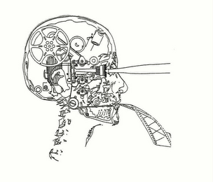 The mark consists of X-Ray design of human skull with projector machinery/reel within skull, eyes projecting light image, film exiting mouth.
