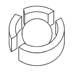 The mark consists of a sphere surrounded by three curved walls or arcs that are separated by equal lengths.