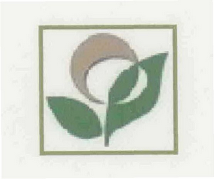 The mark consists of a stylized representation of a flower in green and beige enclosed within a square.