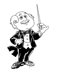 The mark consists of an illustration of an orchestra conductor wearing a tuxedo and holding a baton.