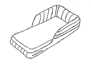 The mark is a configuration for a covered and cushioned infant bed having a generally rectangular base, and end wall and two partial side walls supporting a generally rectangular mattress pad.