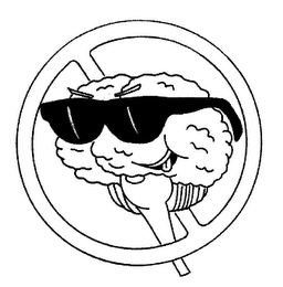 The literal element of the mark consists of a human brain caricature wearing sunglasses positioned in a circle.