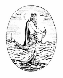 The mark consists of an oval woodblock engraving depicting the classical sea god Triton.