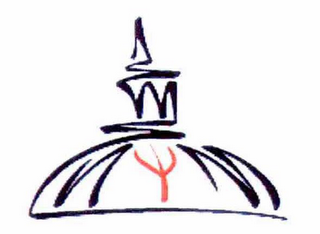 The mark consists of the colors black and red with the color black appearing in the design of the dome and the color red appearing in the fork or trident appearing within the dome. The mark is placed over a transparent background.