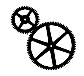The mark consists of a design formed by a pair of toothed-circumference spoke-wheel gears of differing size having their teeth drivingly engaged.
