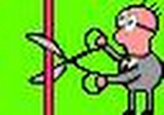 The mark consists of background color is white, scissors are black, and gray, color of figure (man with glasses) is gray suit, black shoes, and pink face..