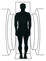 The mark consists of silhouette of a man within an imaging apparatus.