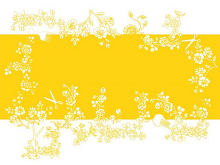 The mark consists of a yellow rectangle and a white floral motif outlined in yellow.