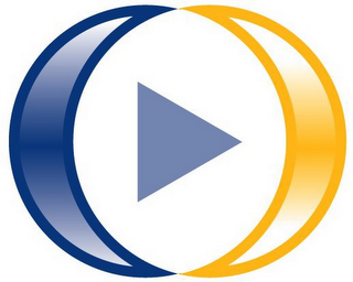 The mark consists of an abstract design. The color blue appears in the semicircle on the left side of the mark and in the arrow design. The color yellow appears in the semicircle on the right side of the mark.