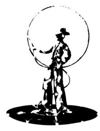 The mark consists of image is of a man wearing a rhinestone-studded cowboy outfit whirling a lasso while standing on a record (LP).