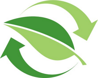 The mark consists of Green leaf design with the top of the leaf a darker green, and the bottom of the leaf a lighter green, surrounded in a circular pattern by green arrows, the top arrow being light green and the bottom arrow a darker green.