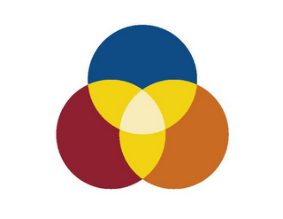 The mark consists of three interlocking circles. A blue circle is on the top. An orange circle is on the right and a red circle is on the left. Where two circles overlap the color is yellow and in the center of the design the three circles overlap and the color is off white.
