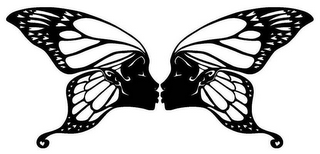 The mark consists of overall shape of a butterfly, wherein the central wing portions on the left and right wings consist of a left and right face, facing each other, with lips puckered for a kiss.