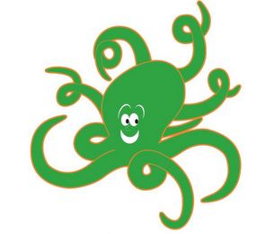 The mark consists of a smiling green octopus with curling limbs.