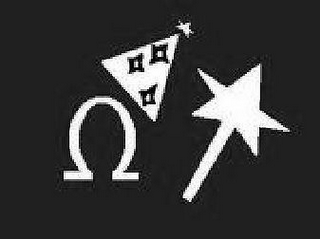 The mark consists of a hat with stars above an omega symbol intended to form the outline of a wizard's capped head, and a wizard's wand.