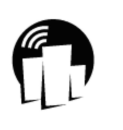 The mark consists of electromagnetic waves above three rectangles of different heights with a circlular background.