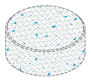 The mark consists of the colors blue and white, with the blue in speckles on an otherwise white round tablet in the shape and approximating the size of a hockey puck.