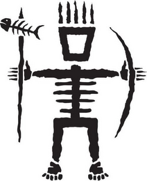 The mark consists of a stylized caveman figure with a speared fish, spear and bow.